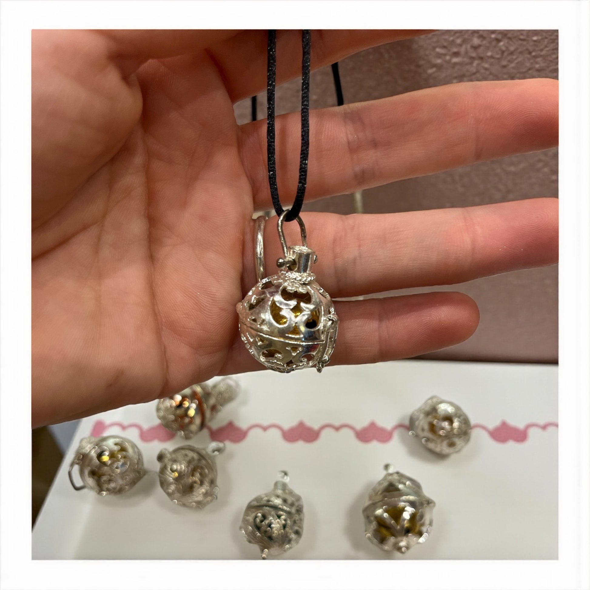 Cada llamador tiene su propio timbre o vibración única, que conecta con la frecuencia personal de quien lo lleva. Al usarlo, se convierte en un recordatorio constante de que nunca estás sola ni desprotegida, y que la guía divina siempre está disponible cuando mantienes tu corazón abierto.